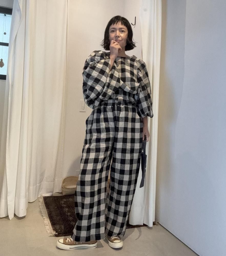 ウェストゴムになっておりますので、ブラウジングする感じで遅でも見頃もふわっとさせるのがオススメです