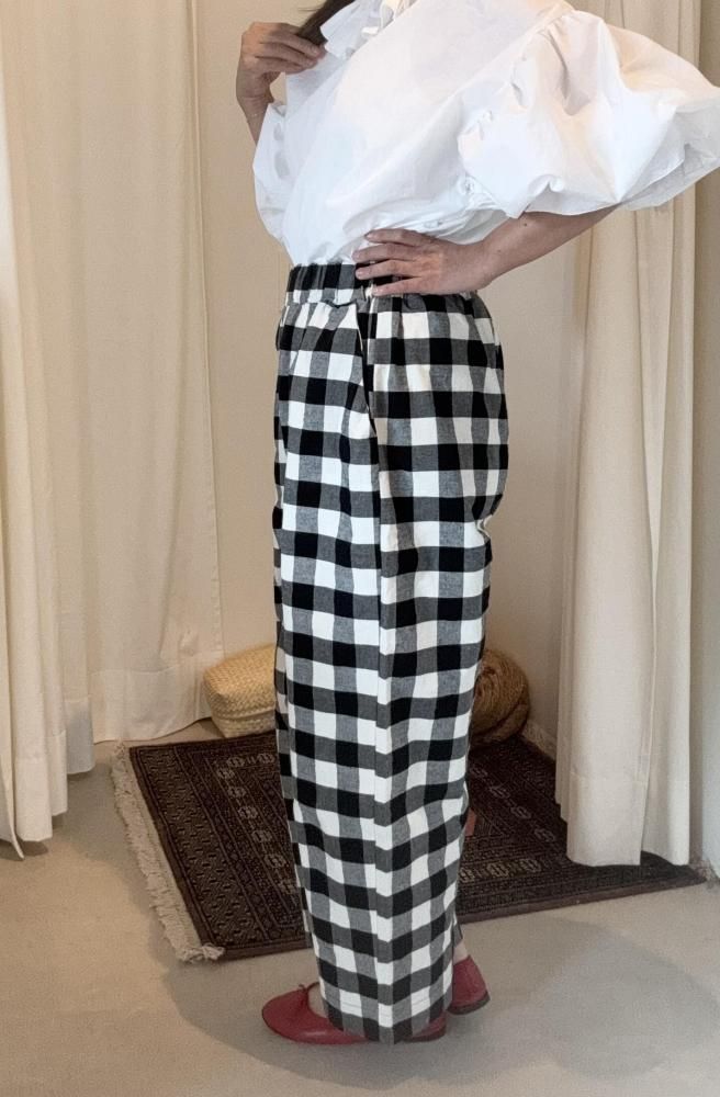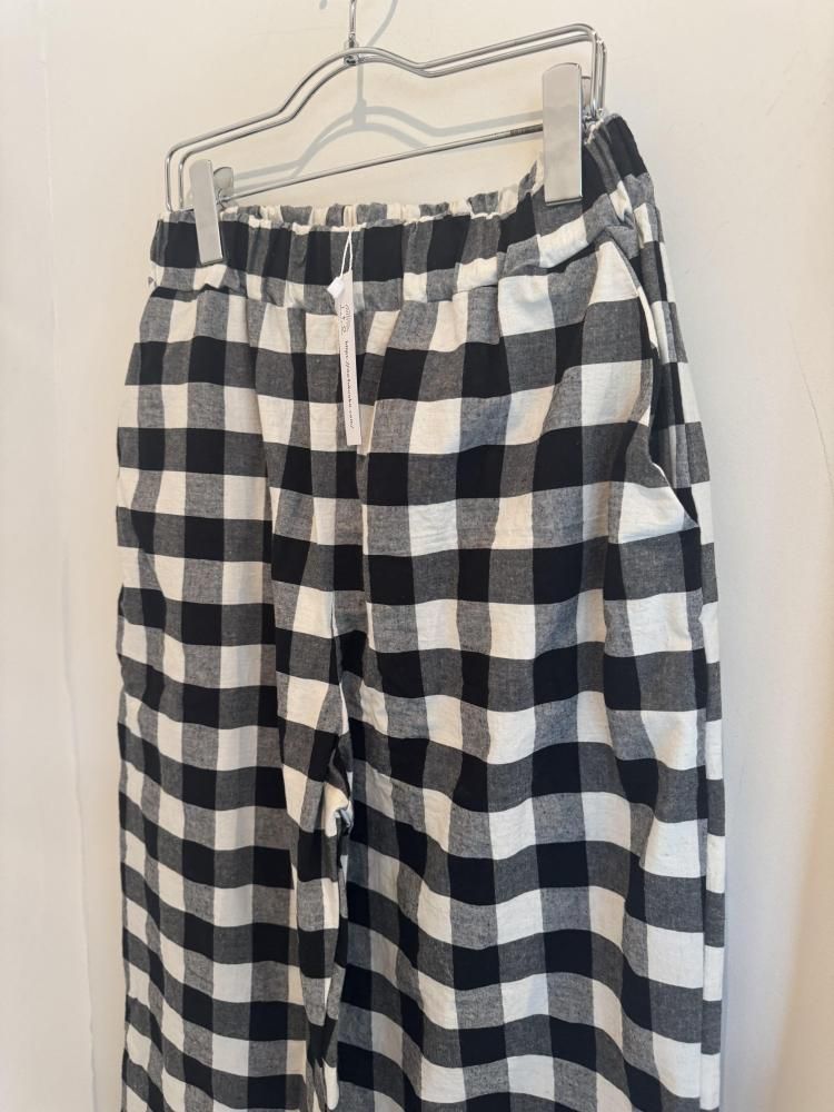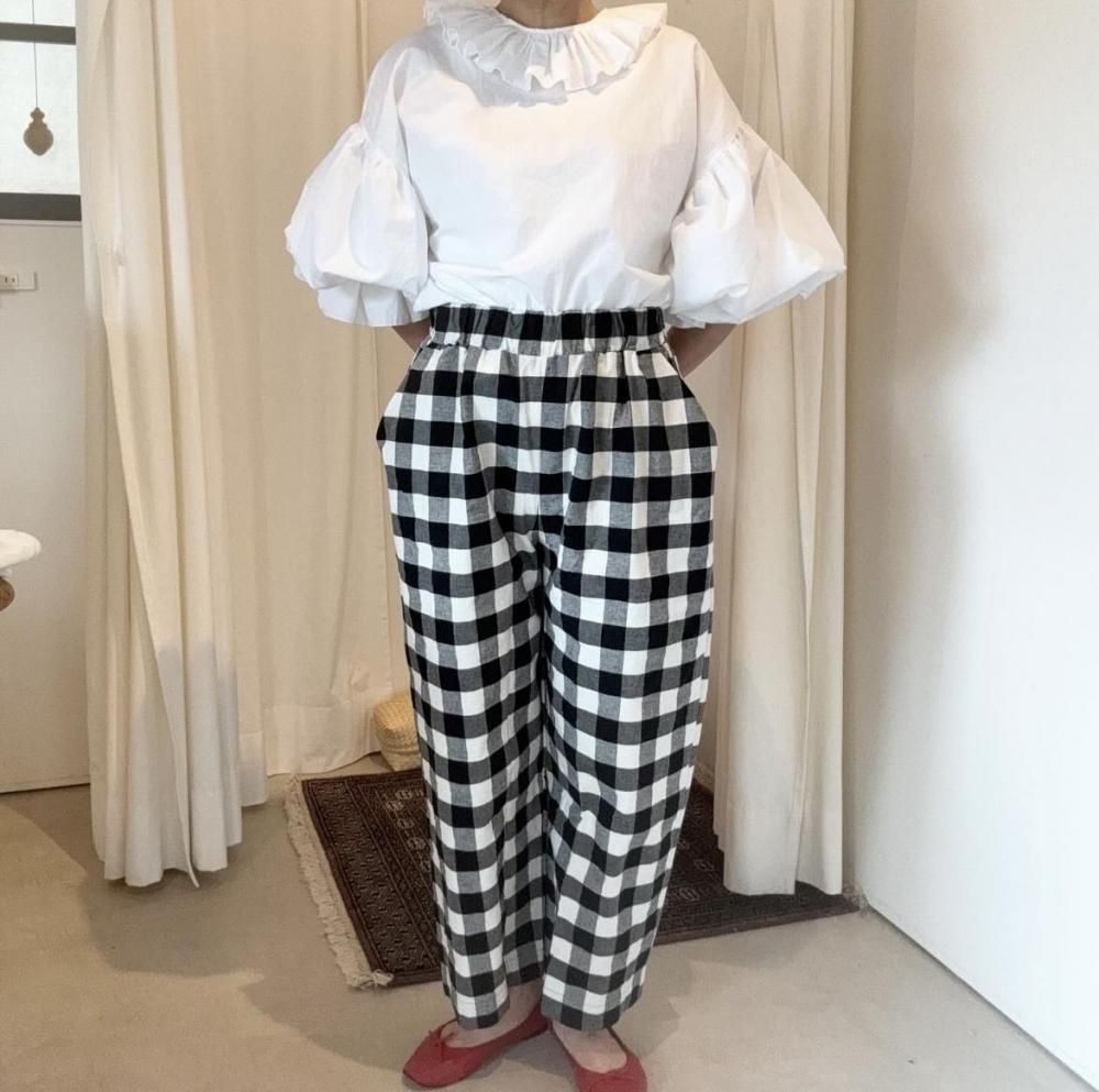 block check straight pants(black×white)
