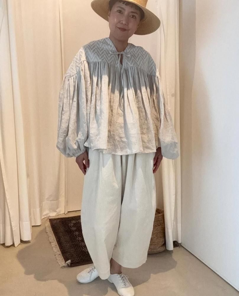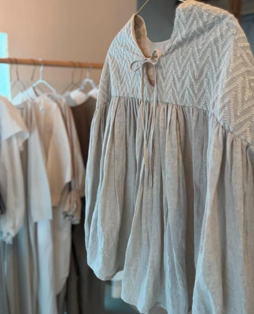 上質なレースと上質なリネンのコンビネーションのお洋服をお作りしました