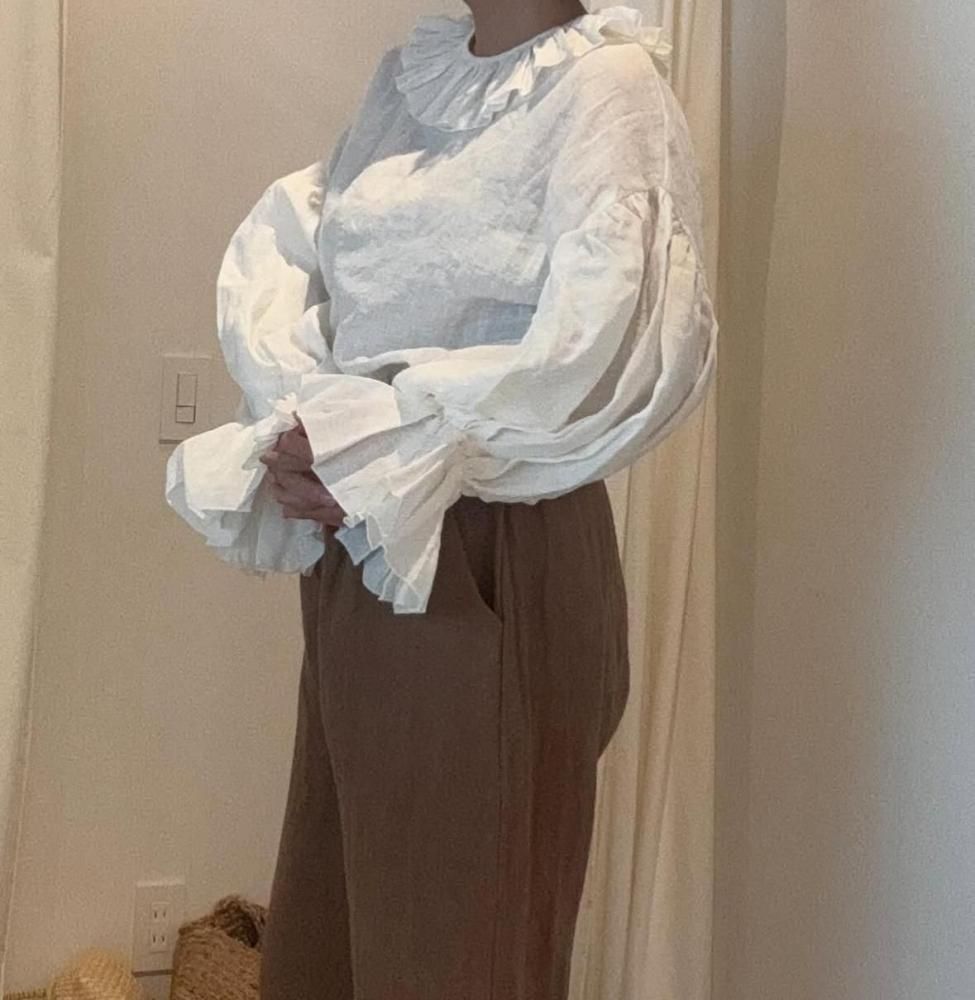 こちら60番手washer linenの生地にて、可愛いblouseをお作りします