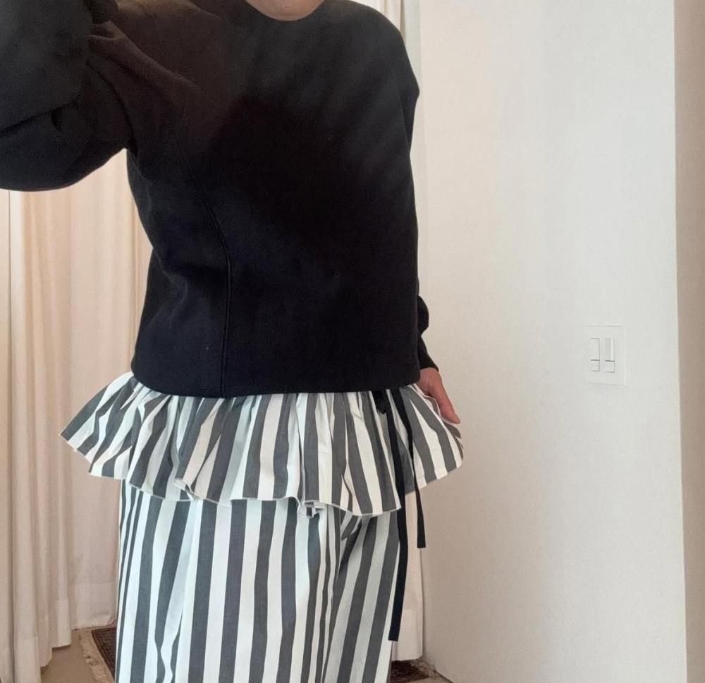 コットン100%の生地でウエストフリルのパンツをお作りいたしました