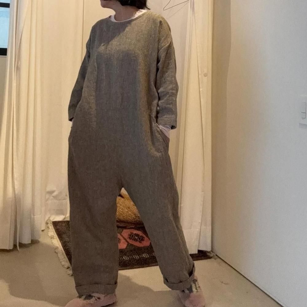 素材は linen100%(シャンブレートリプルウォッシュの上質なリネンです◎)を使用した人気のjumpsuit slimtypeをお作り致します